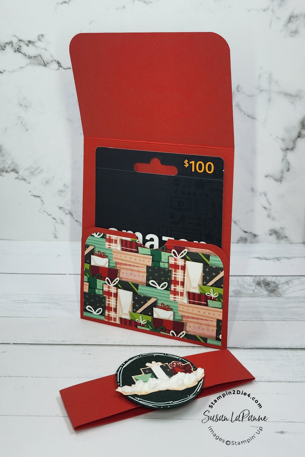 Pinterest vertical gift card open with band